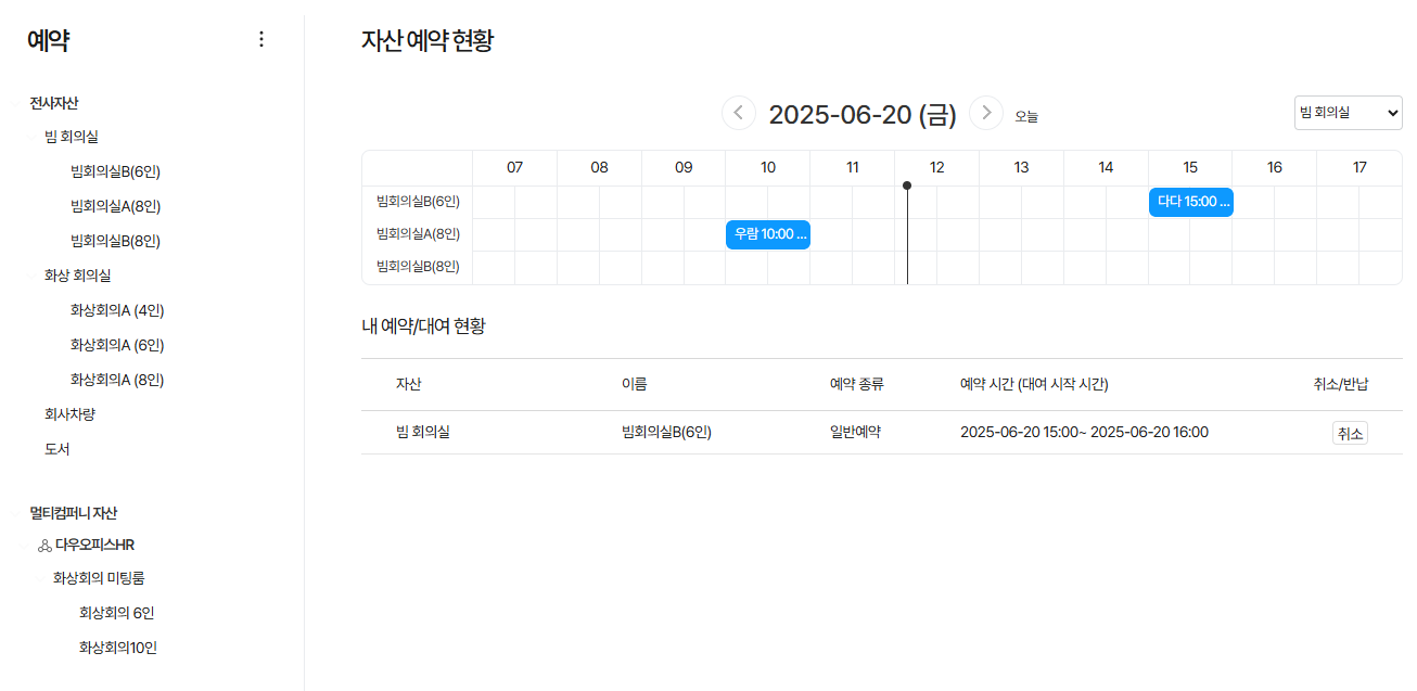 관리자는 그에 따라 회사 자산의 예약 및 대여 현황을 효율적으로 관리할 수 있습니다.