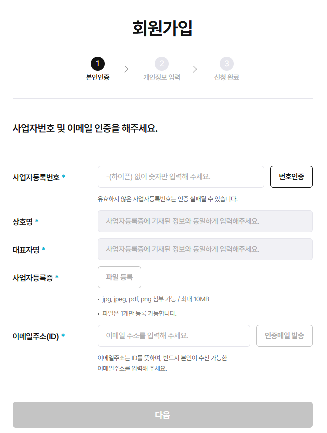 - 회사 정보를 입력해 회원가입 신청 진행