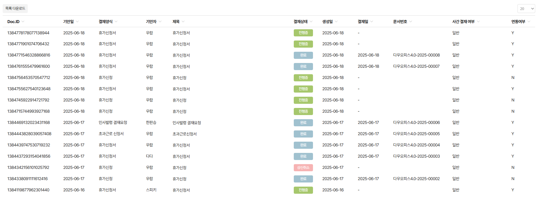 결재 문서 목록 다운로드