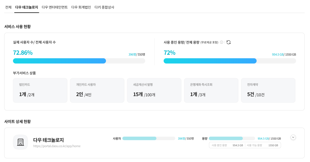 - 전체 용량 : 고객사가 구매한 용량 전체의 합계 표시