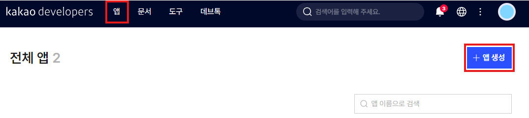 카카오 API를 사용할 주체를 등록해야 합니다.