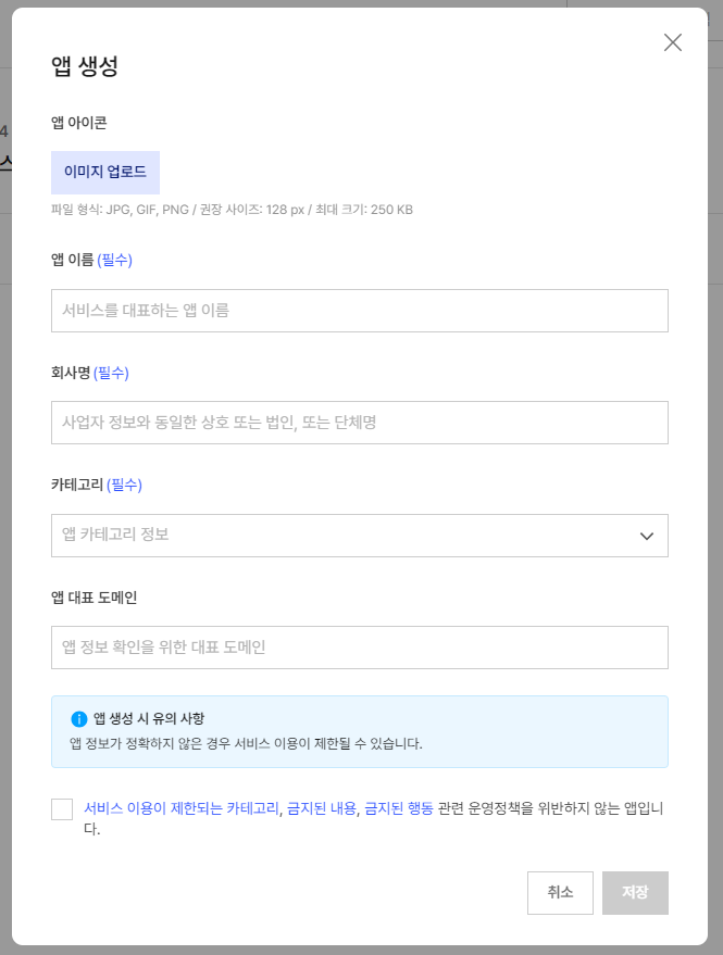 • 이미지 업로드 : 앱 아이콘 이미지 등록 (선택 사항)