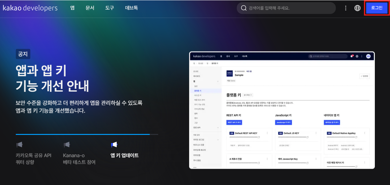 1. 카카오 Developers에 접속하여 카카오 계정으로 로그인