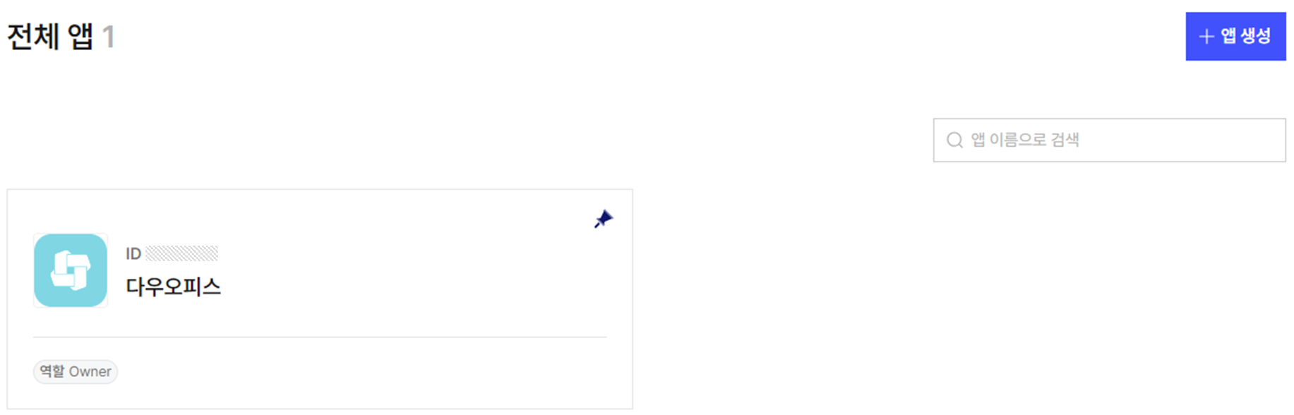 • 앱 이름 : 관리자가 식별하기 쉬운 이름을 자유롭게 설정  (예시 : 다우오피스_근태관리)
