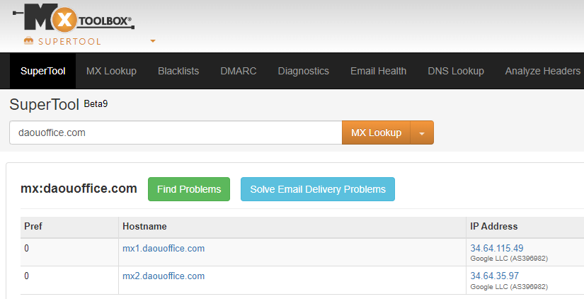 mxtoolbox.com 접속 ▷ 메일 발송 서버 IP 확인 (발송 도메인 조회)