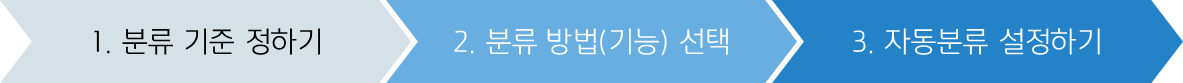 자동분류는 메일 제목 또는 받는사람/보내는사람 메일 주소로 필터링 규칙을 설정하여