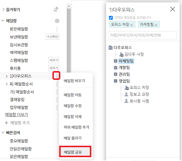 다우오피스가 제공하는 메일 분류 기능 | ||