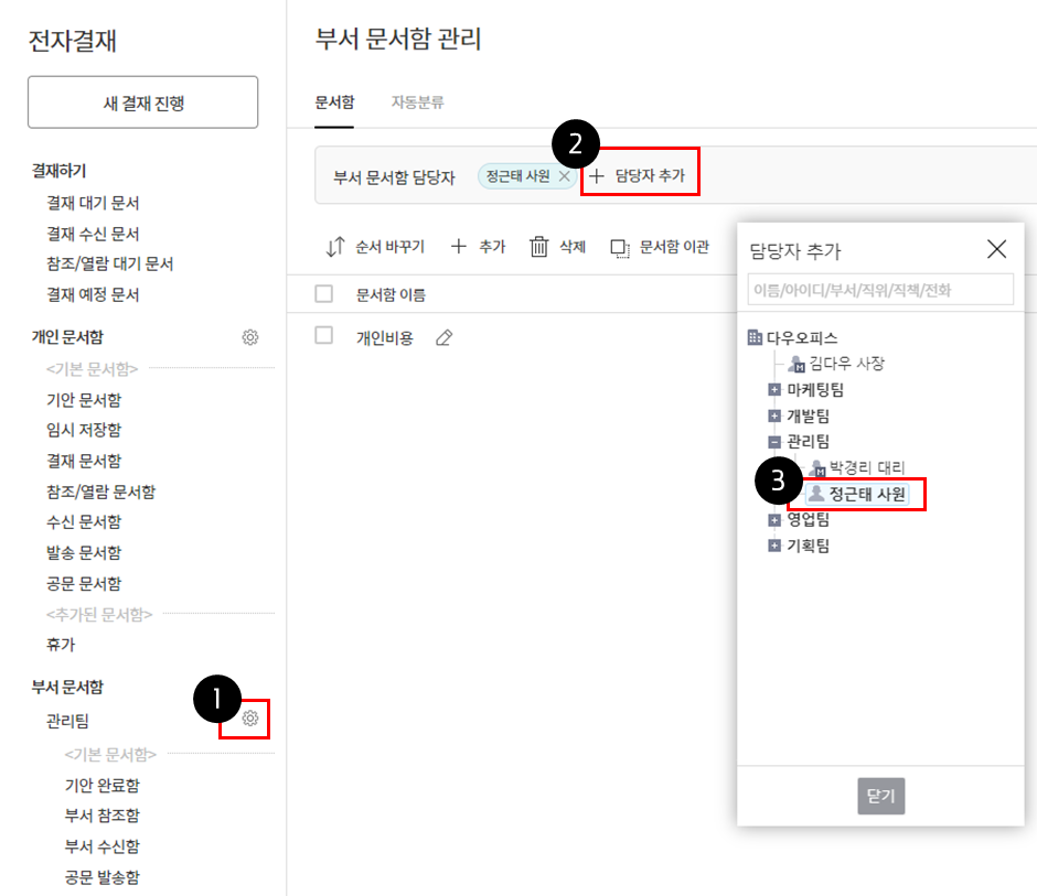 • 다른 부서 문서함 담당자 지정