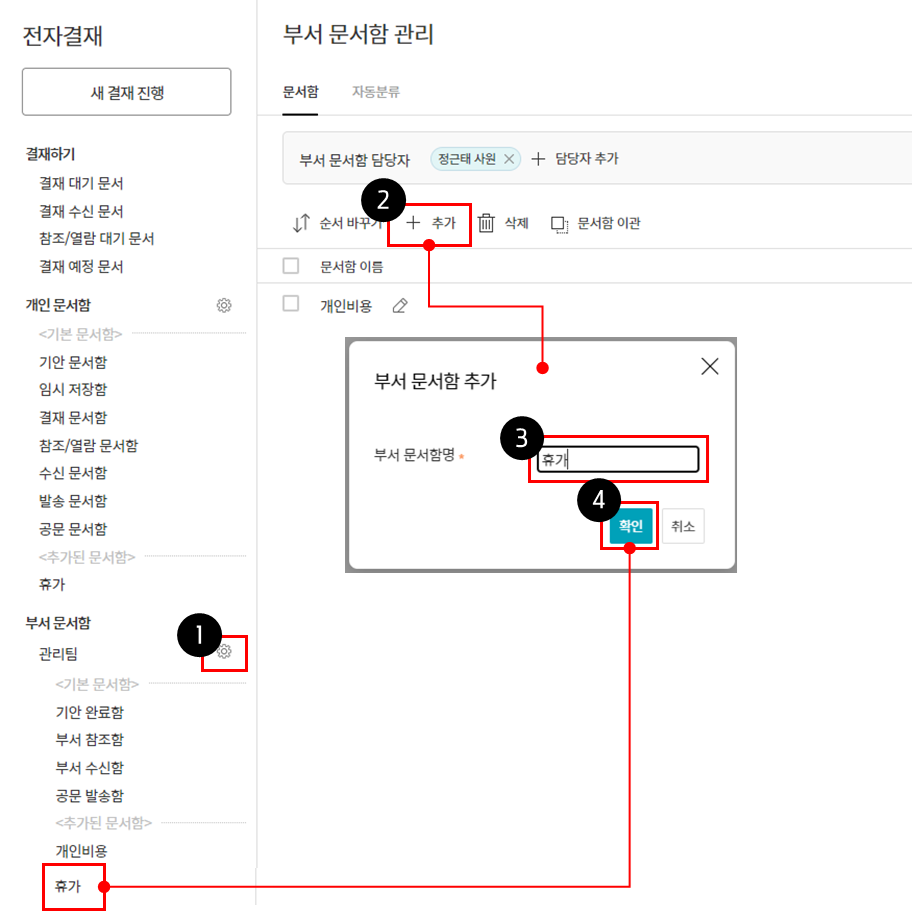 부서 문서함 담당자 지정 방법