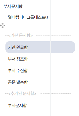 부서 문서함은 시스템에서 자동 제공되는 기본 문서함과, 문서를 빠르게 분류할 수 있도록 부서별로 생성 가능한 추가 문서함으로 구성됩니다.