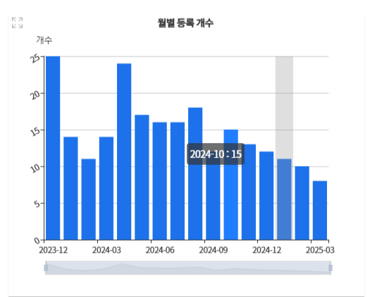 “접수일” 항목 선택 ➡️ “일별” 그룹 설정 ➡️ 2025-03-25, 2025-03-26 등으로 시각화