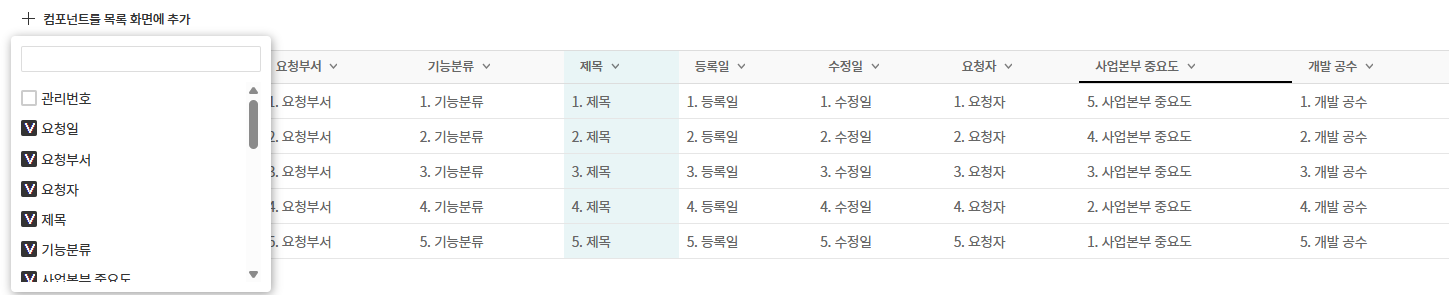 항목 명 수정: 이름을 클릭하여 컬럼명 변경 가능