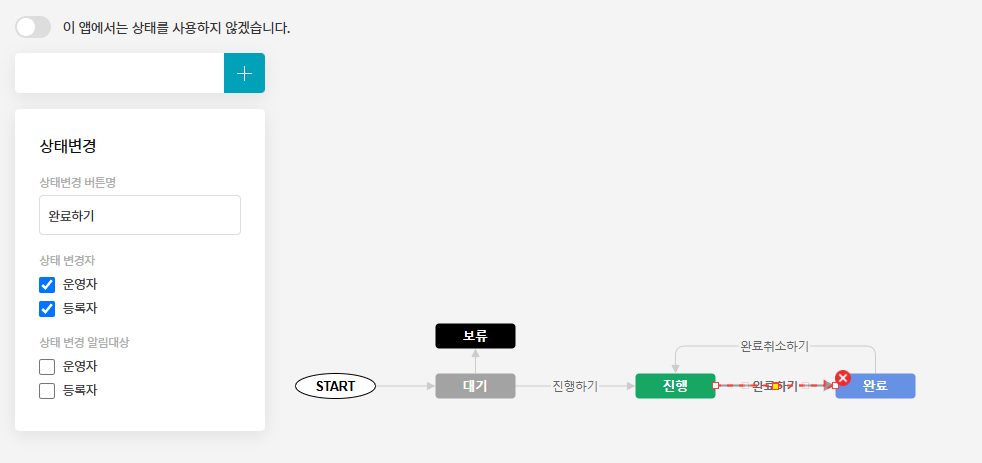 최초 시작(START) 상태는 삭제하거나 수정할 수 없습니다.