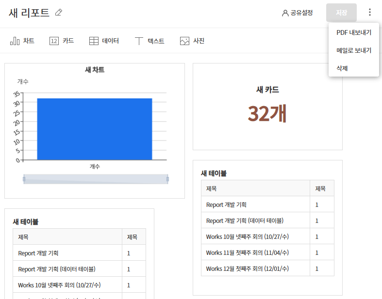 - 메일로 보내기 : 이메일을 통해 다른 사용자에게 리포트 전송 가능