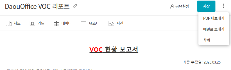 - PDF 또는 이메일을 통해 외부 공유 가능