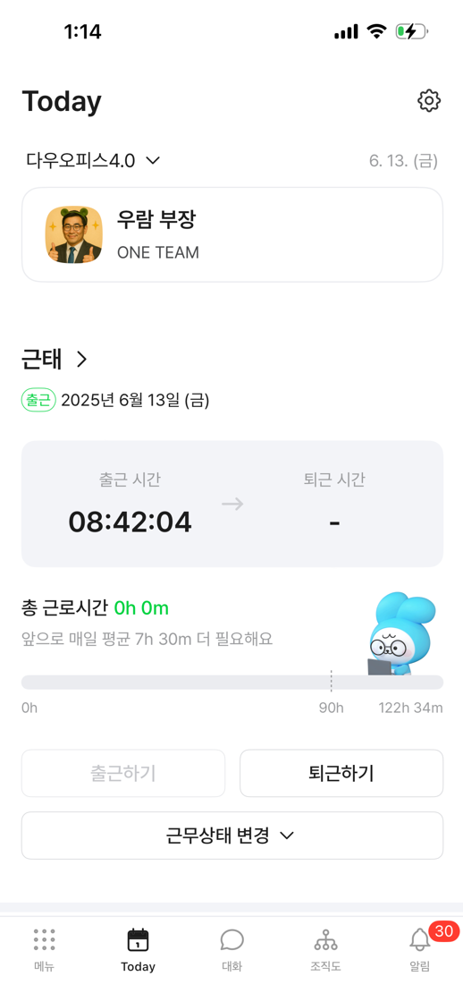 - 출근/퇴근 체크 및 근무 상태 변경을 빠르게 실행할 수 있습니다.