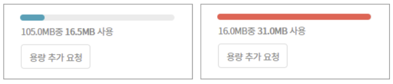 용량을 초과했거나 부족한 경우, [용량 추가 요청] 버튼을 클릭하여 관리자에게 용량 추가를 요청할 수 있습니다.