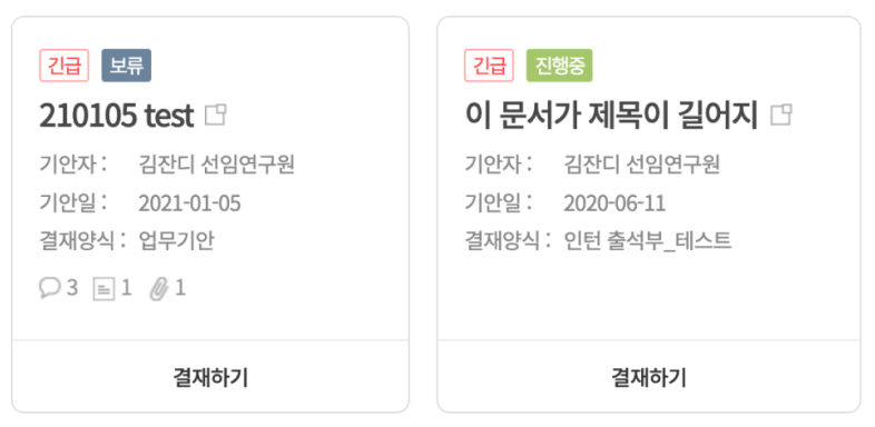• 반려 결재 의견 : 결재 의견 외 반려 결재 의견은 필수 사항으로 입력