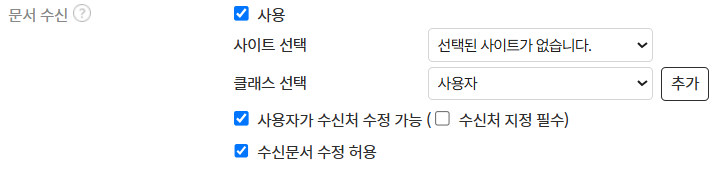 - 결재정보 내 '문서 수신' 사용에 체크