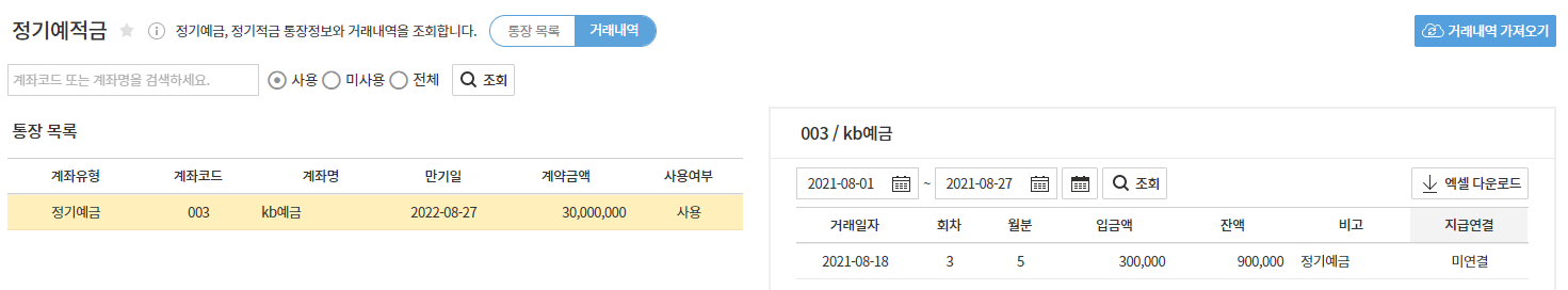 - 통장 등록 시 정기예금, 정기적금으로 등록한 계좌 조회 📑[설정/연동] 통장/카드 등록 가이드 참고