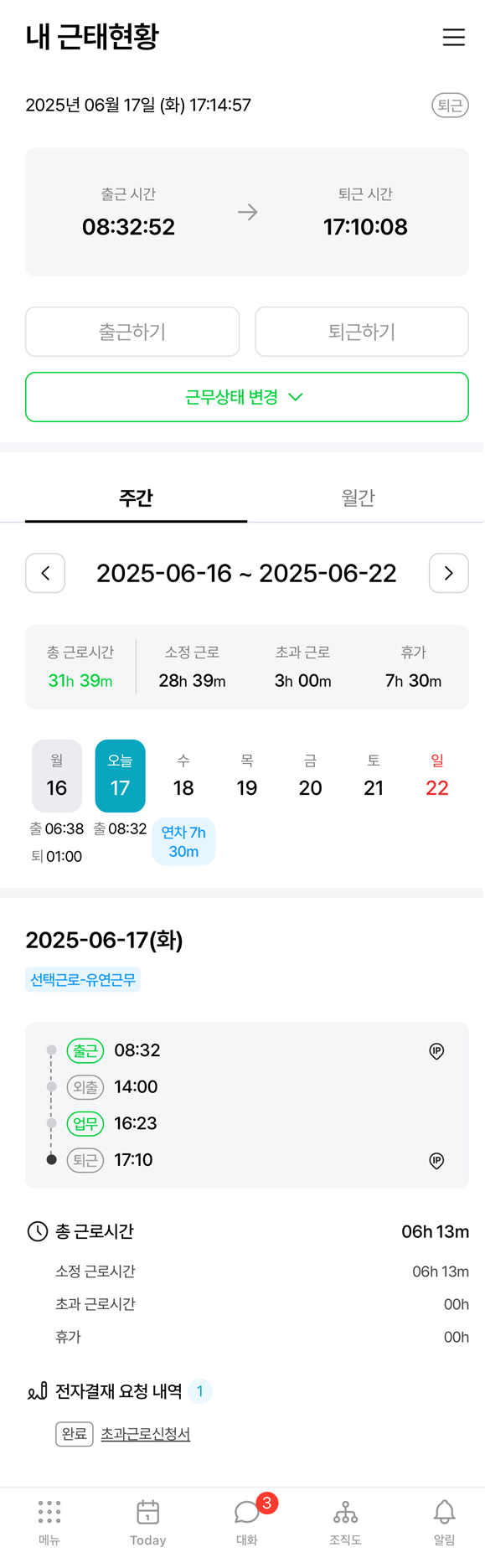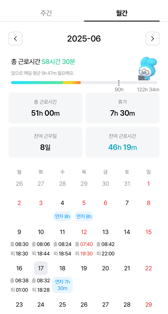 우리 회사가 사용 중인 근무 제도에 따라 화면에 노출되는 항목이 다를 수 있습니다.