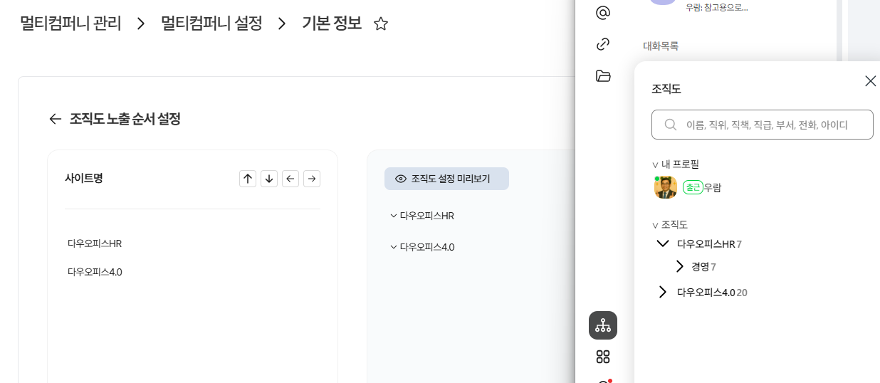 조직도 노출 순서 설정