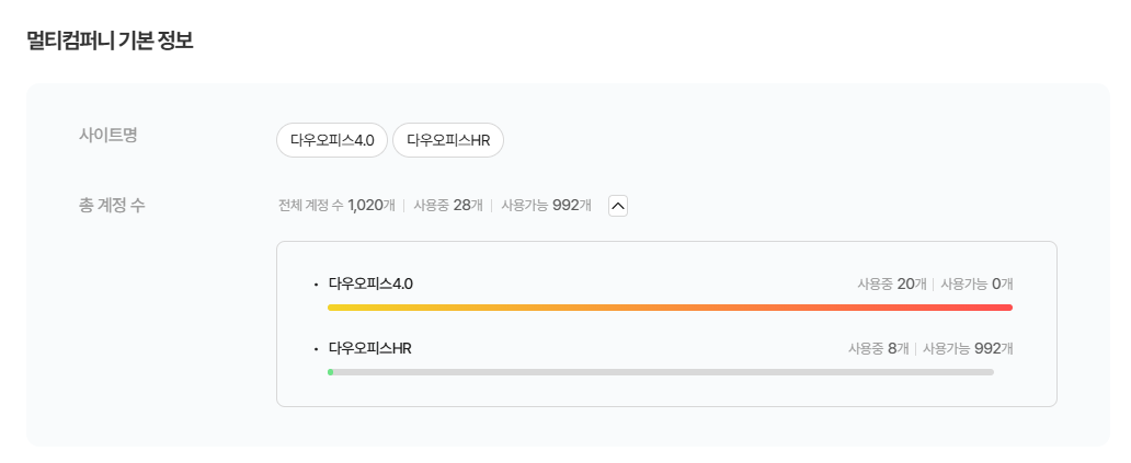 - 총 계정 수 :멀티컴퍼니에 연결된 전체 사용자 계정 수 확인