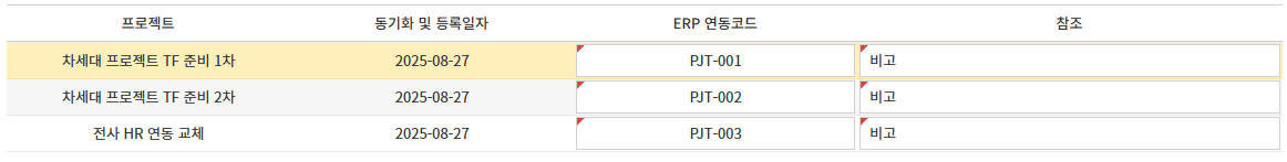 - ERP 시스템에서 사용하는 프로젝트 코드 입력