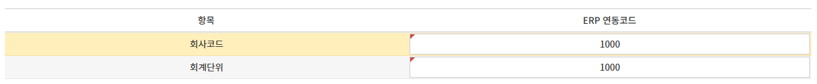 - ERP 전표에 반영될 회사코드 또는 회계단위코드를 필수 입력