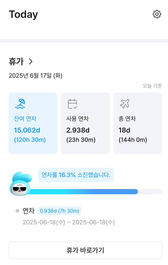 - 잔여 연차 : 오늘 기준 사용 가능한 연차