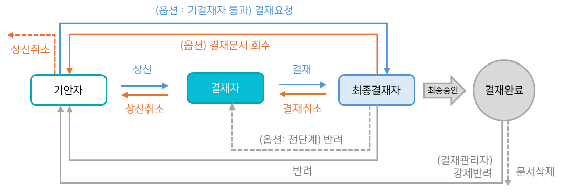 단, 기본적으로 반대해도 결재는 진행되며 진행되지 않도록 설정하기 위해서는 관리자의 설정이 필요합니다.