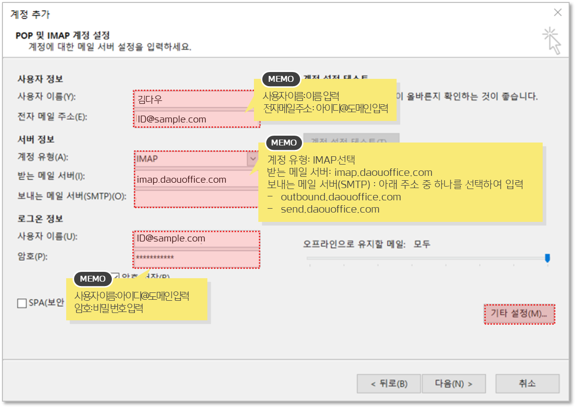 ์์๋ฃฉ ๋ฉ์ผ ์ค์ ์์ POP3/IMAP ์๋ฒ ํฌํธ ๋ฒํธ๋ฅผ ํ์ธํด์ผ ํฉ๋๋ค.
