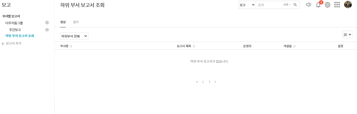하위부서가 있는 부서의 부서장(부부서장)은 하위 부서의 보고서를 조회할 수 있습니다.