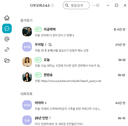 대화방을 생성한 후, 자주 사용하는 대화방을 효율적으로 관리하고 더 편리한 형태로 활용할 수 있도록 다양한 기능이 제공됩니다.