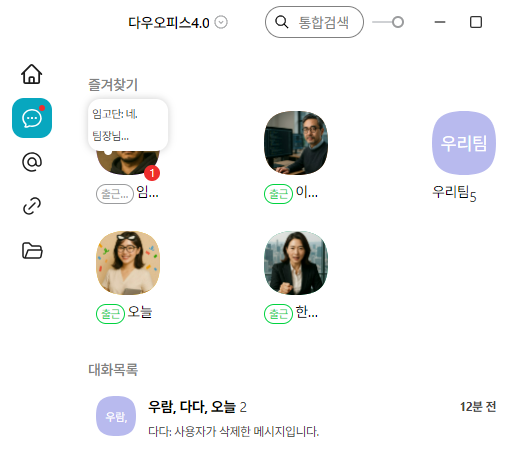 - 대화방 목록 상단 ‘즐겨찾기 영역’에 표시되어 빠르게 접근 가능