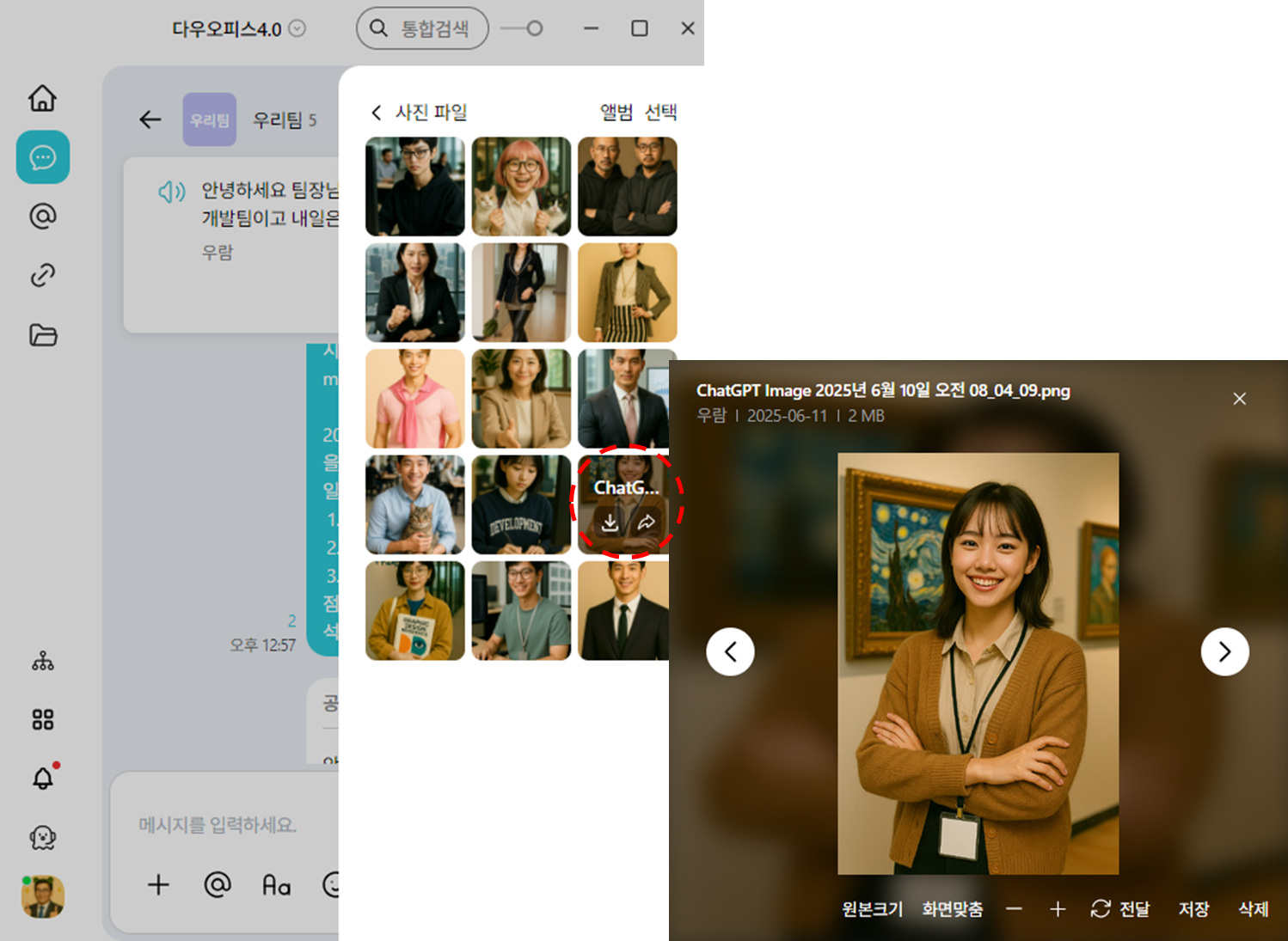 전송된 문서나 이미지 파일은 다운로드 없이도 미리보기를 통해 내용을 바로 확인할 수 있습니다.