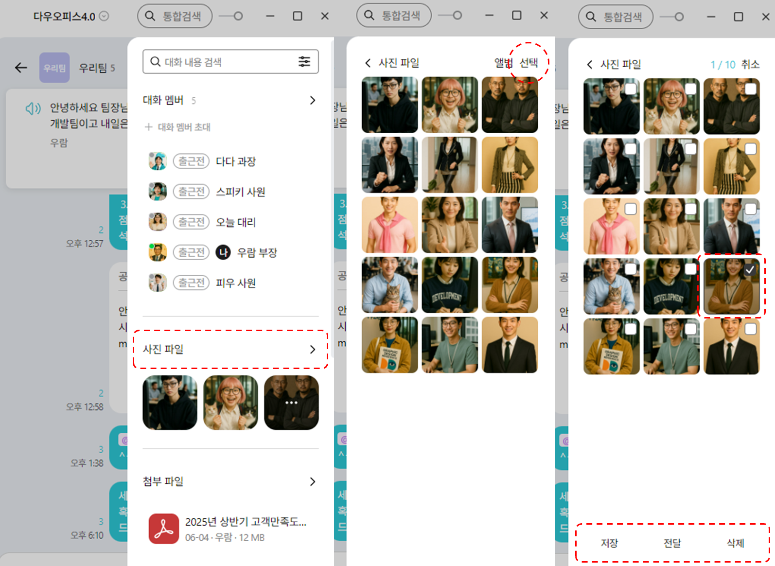 PC메신저에서는 다양한 형식의 파일을 간편하게 첨부하고, 전송 후에도 효율적으로 관리할 수 있도록 첨부파일 관련 기능을 제공합니다.