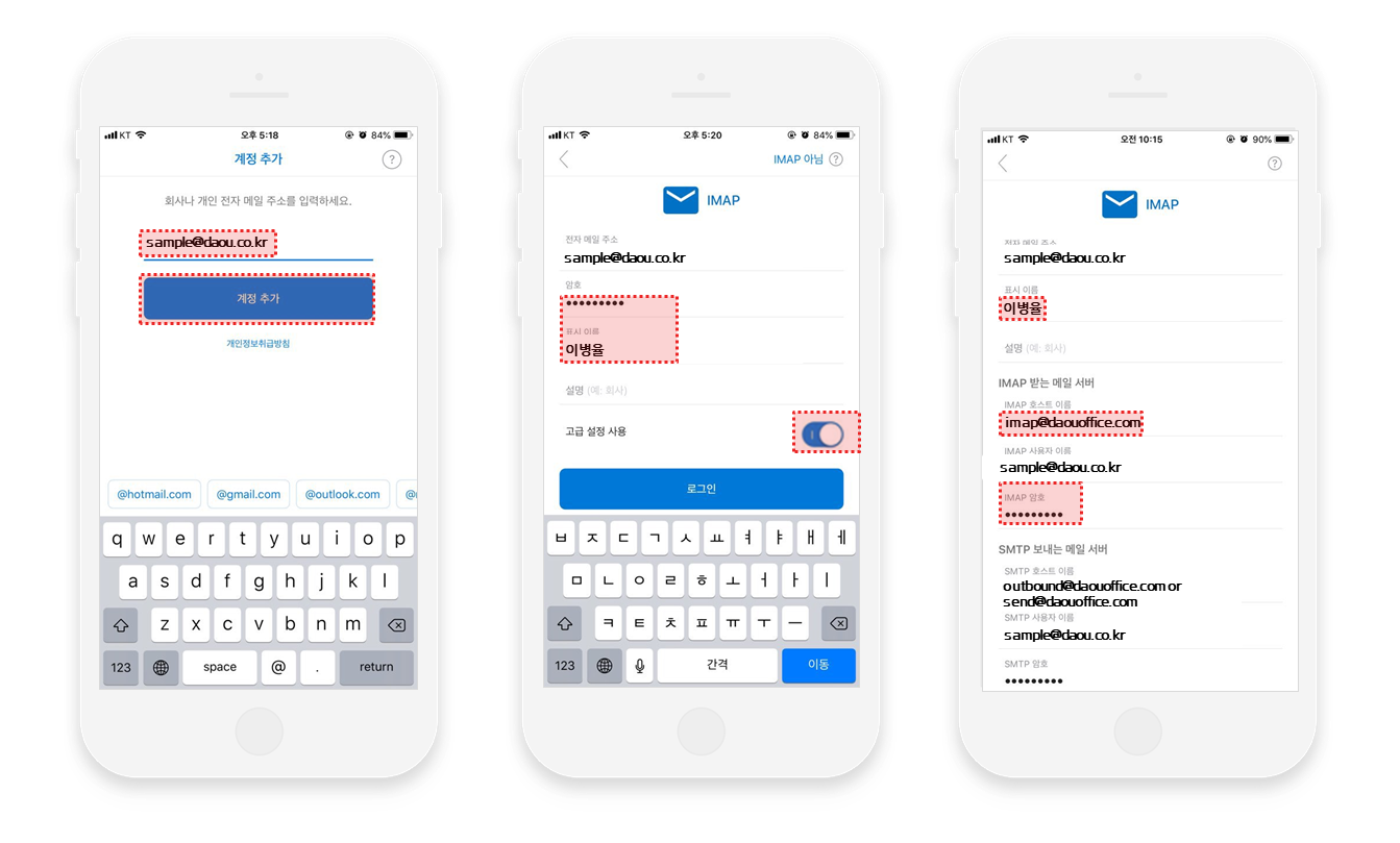 4. [IMAP 호스트 이름]에 imap.daouoffice.com 주소 입력