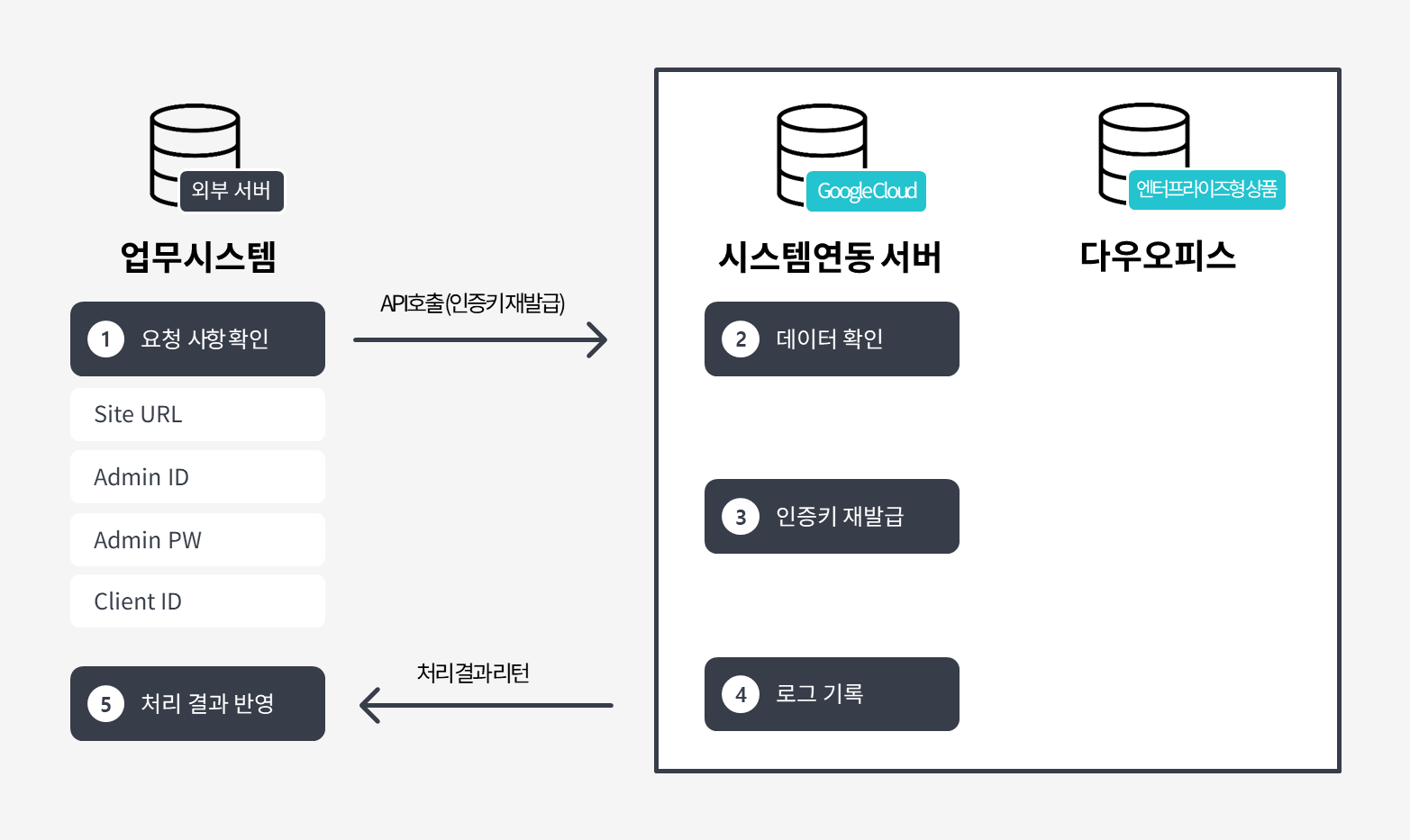 다우오피스 OpenAPI를 연동하기 위해 필수인 인증키(Client ID / Client Secret) 의 발급, 조회, 재발급 절차를 통합 정리한 가이드입니다.