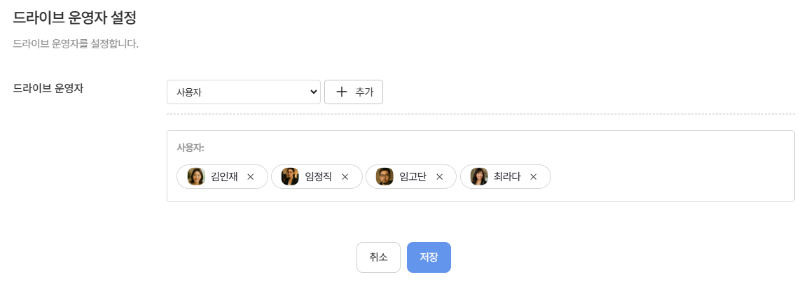 회사 드라이브를 부서·조직 단위로 나누어 관리할 수 있도록 드라이브 운영자를 지정합니다.