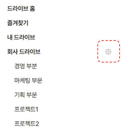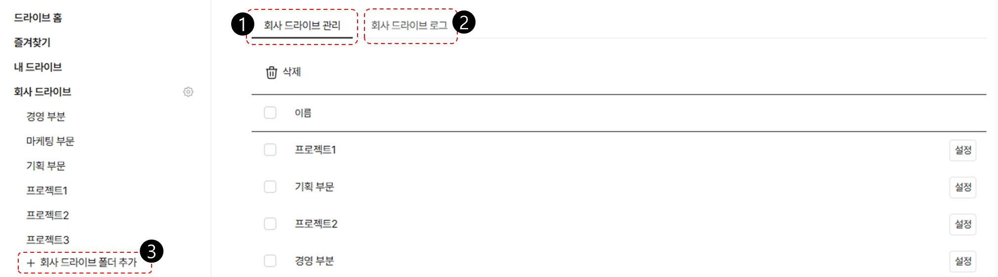 - 드라이브 관리자 : 모든 회사 드라이브 상위 폴더 관리 기능