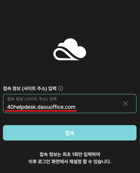 PC 동기화 프로그램을 최초 실행하면 접속 정보(사이트 주소) 입력 화면이 나타납니다.