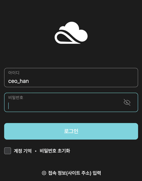 - 계정 정보 입력 : 아이디 / 비밀번호 입력