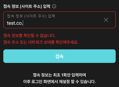- 접속 정보 오류 또는 네트워크 문제 발생 시 아래와 같이 문구 노출