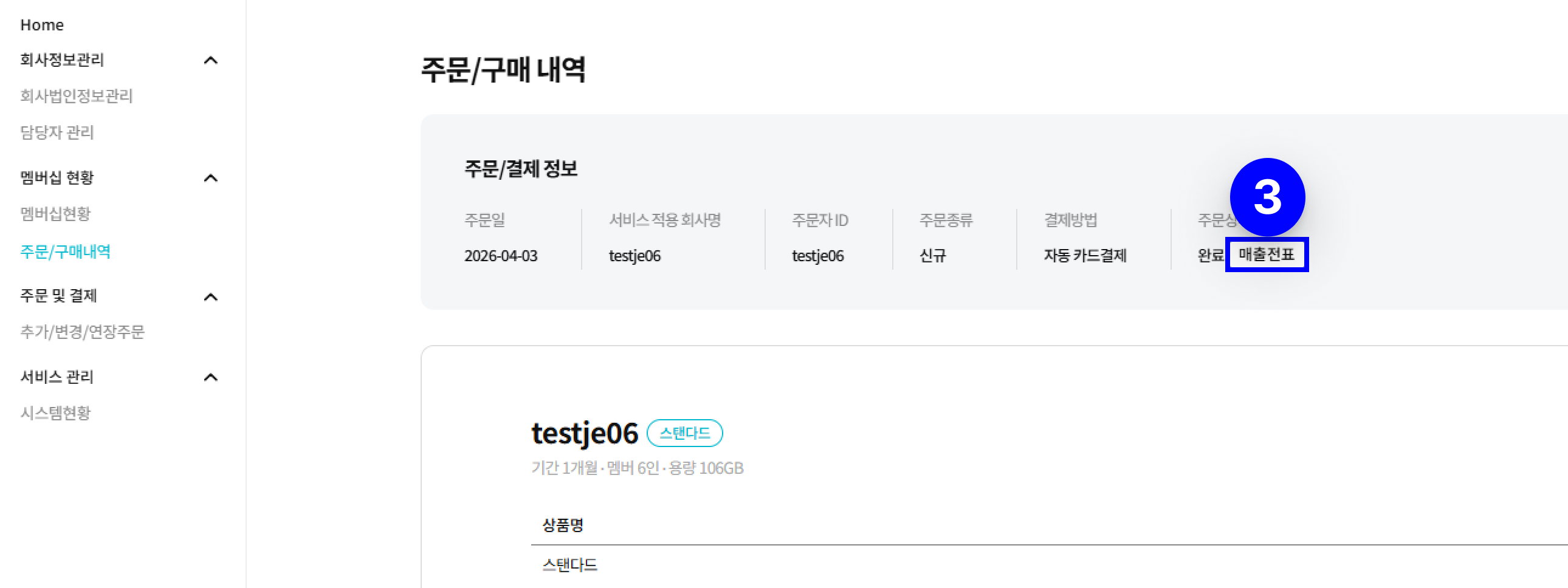경로 : 🧭 고객포털 > 멤버십 현황 > 주문/구매내역