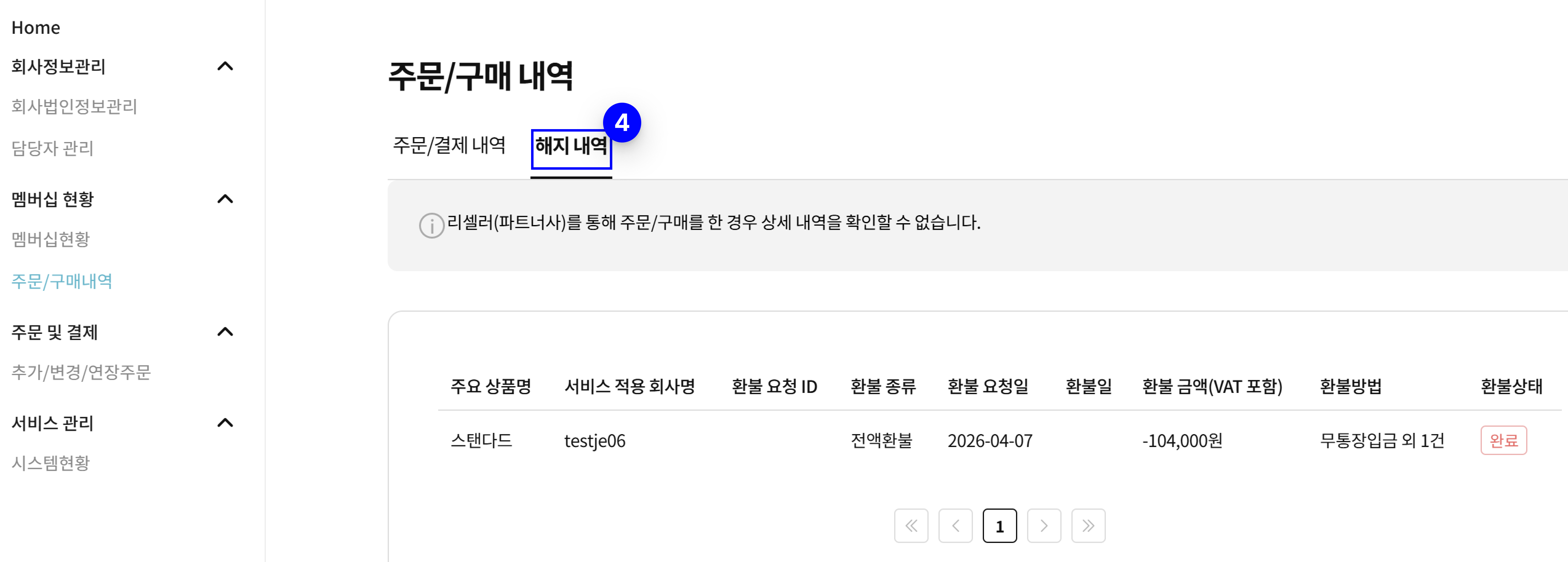 - [해지 내역] 탭에서 환불 내역 및 해지 이력 확인 가능