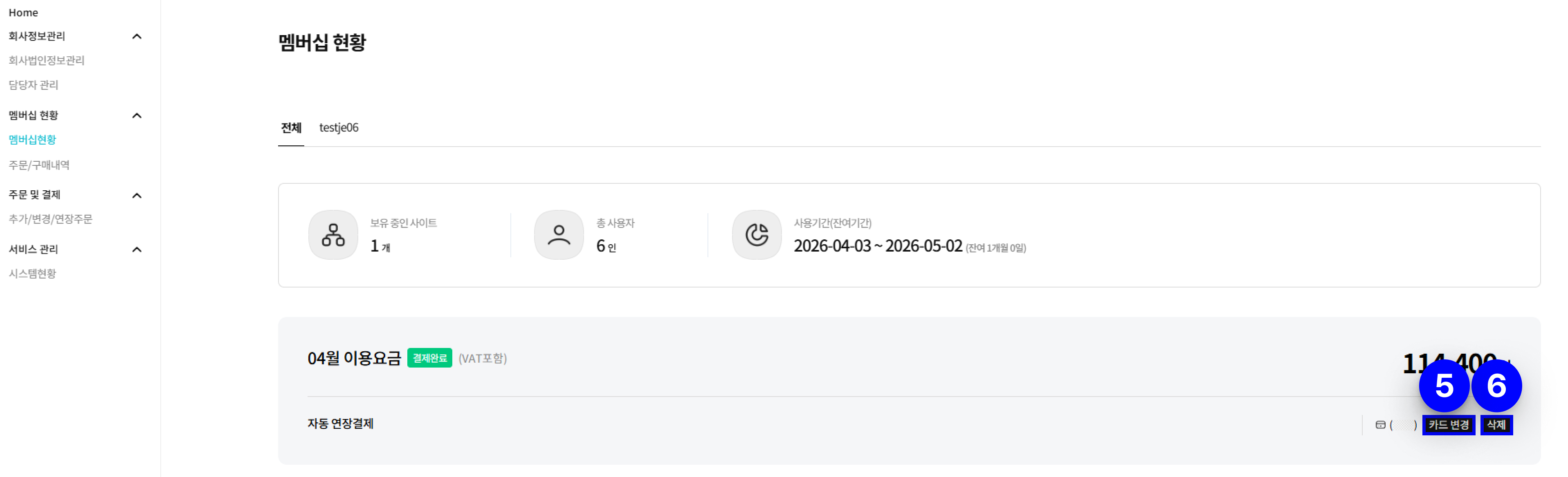 - 결제 수단 및 결제 정보 변경은 [멤버십 현황] 메뉴에서 확인 가능