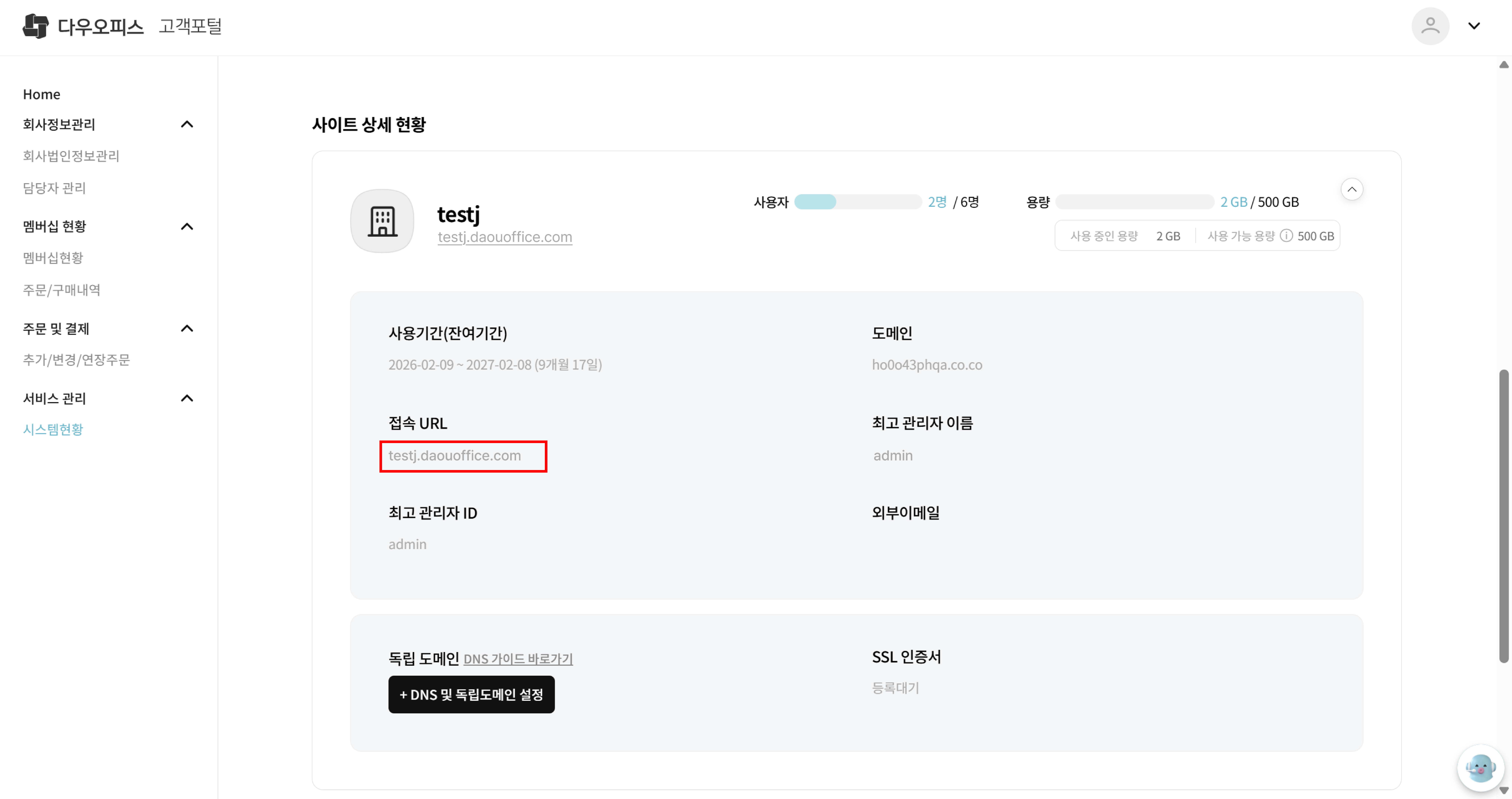 - 접속 URL 확인 (예: company.daouoffice.com)